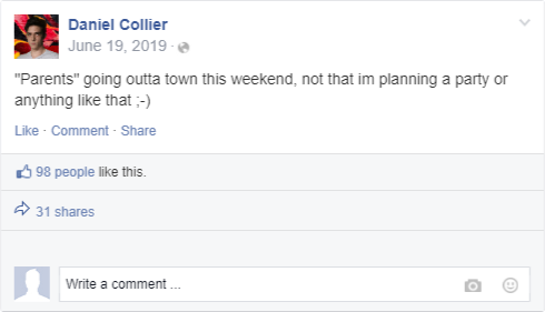 Investigators examined posts from Daniel Collier's Facebook page to get a feel for his activity over time.