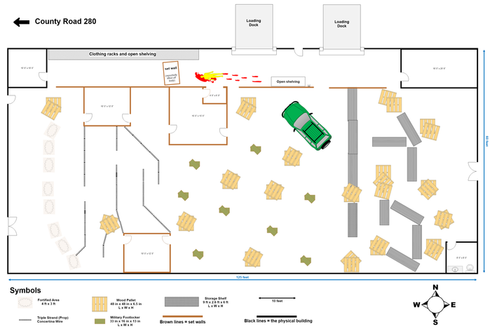 Investigators created a diagram of the warehouse at 3 County Road 280, which the Yoknapatawpha Players used as their performance space for "Zombie Escape" and where Scott Bryant was found dead after a dress rehearsal.