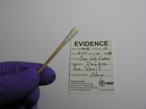 | Findings: Multiple analyses found the substance was consistent with vomit. |